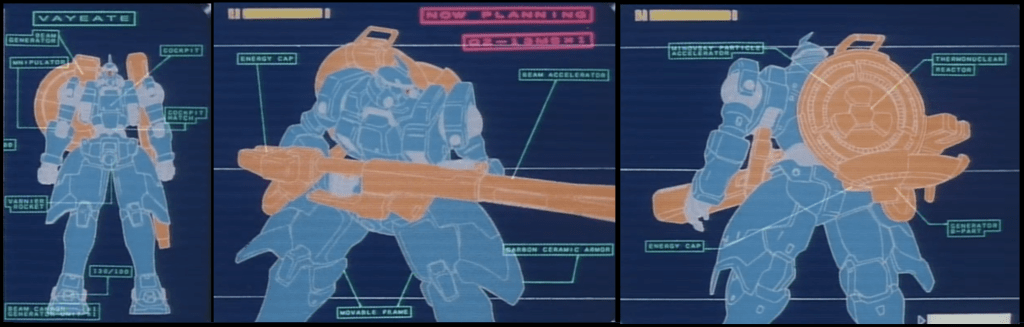 Well, that is thanks to the fact that the Vayeate carries at its back a small portable compact thermonuclear reactor and a particle accelerator. All of that enables the Vayeate to have an almost limitless supply of beam ‘ammunition’ for battle.