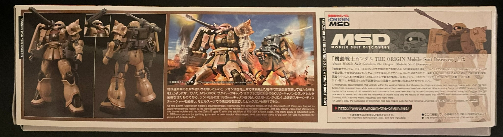After unboxing a lot of MG’s and RG’s recently, I figured I needed to unbox something a tad bit different. So that was one of the driving reasons I decided to unbox the RE100 Zaku FZ. But still, it left me wanting, still not happy enough. So as I was looking for a new kit to unbox on the backlog, I came across a few kits, but it was the HGOriginsMSD Zaku Half Cannon I decided to settle on.