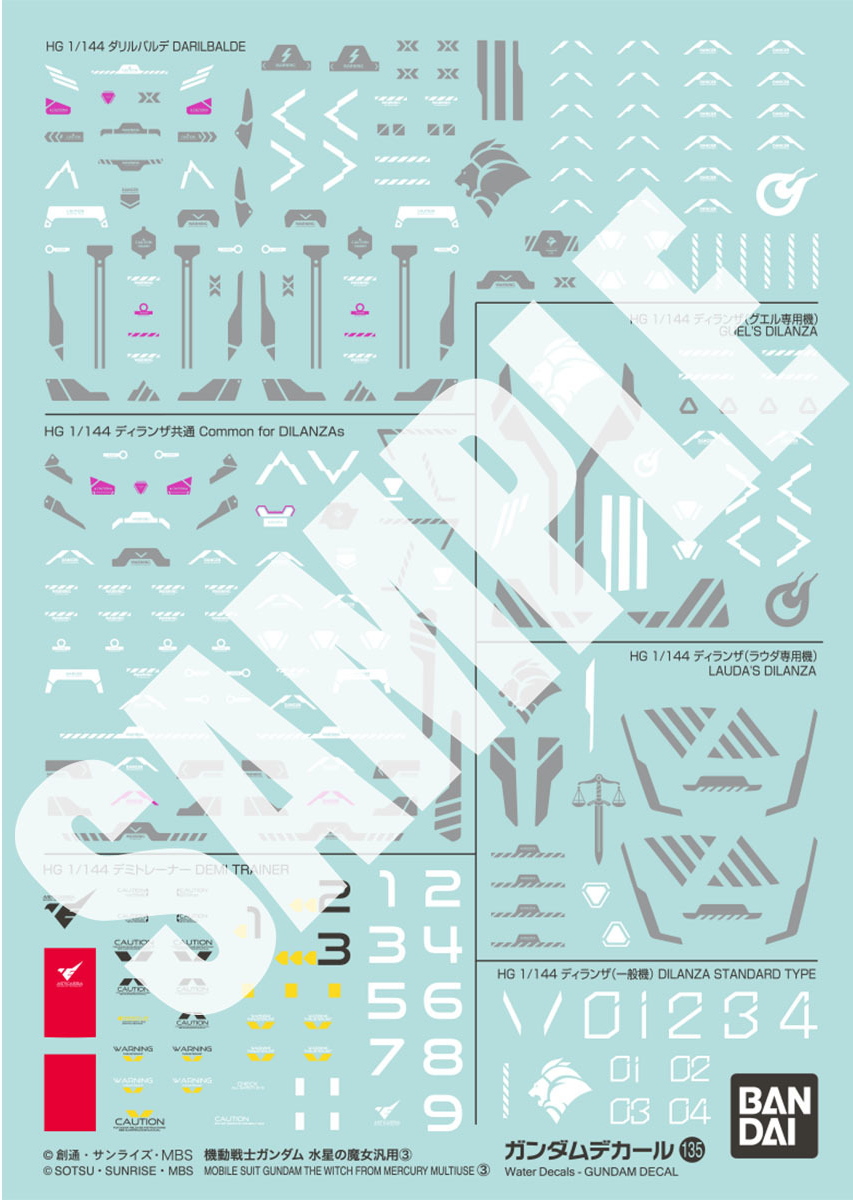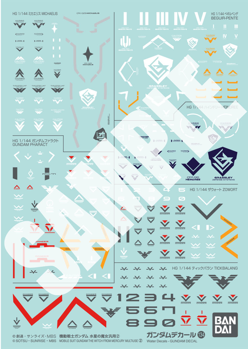 Gundam Decals No.133, 134 & 135 Mobile Suit Gundam The Witch From Mercury General Purpose Decals 1, 2 & 3